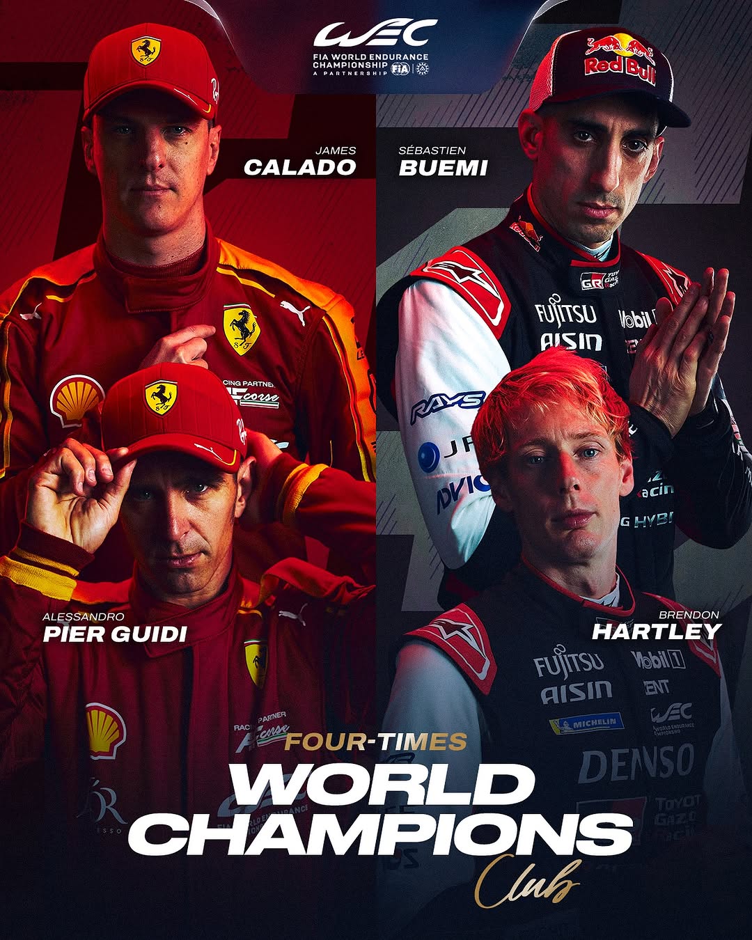 Four-time world champions’ club ✨ @jamescalado and @ale_pierguidi join the ranks. #WEC #Ferrari #Toyota