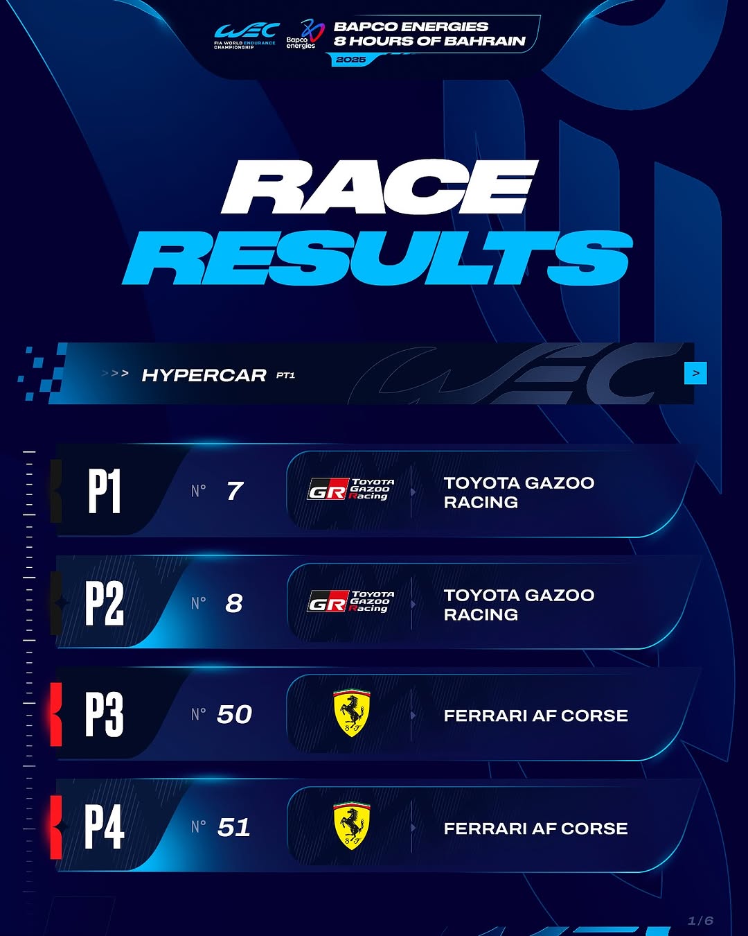 Full race results for the Bapco Energies 8 Hours of Bahrain 🇧🇭🏁 Were you watching the season finale? #WEC #8HBahrain