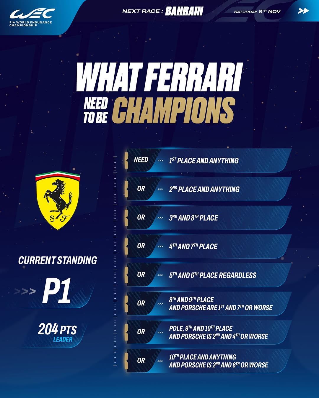 Top of the table: @ferrarihypercar ✨ Ferrari has its first WEC world title within reach this week - here’s what they nee...